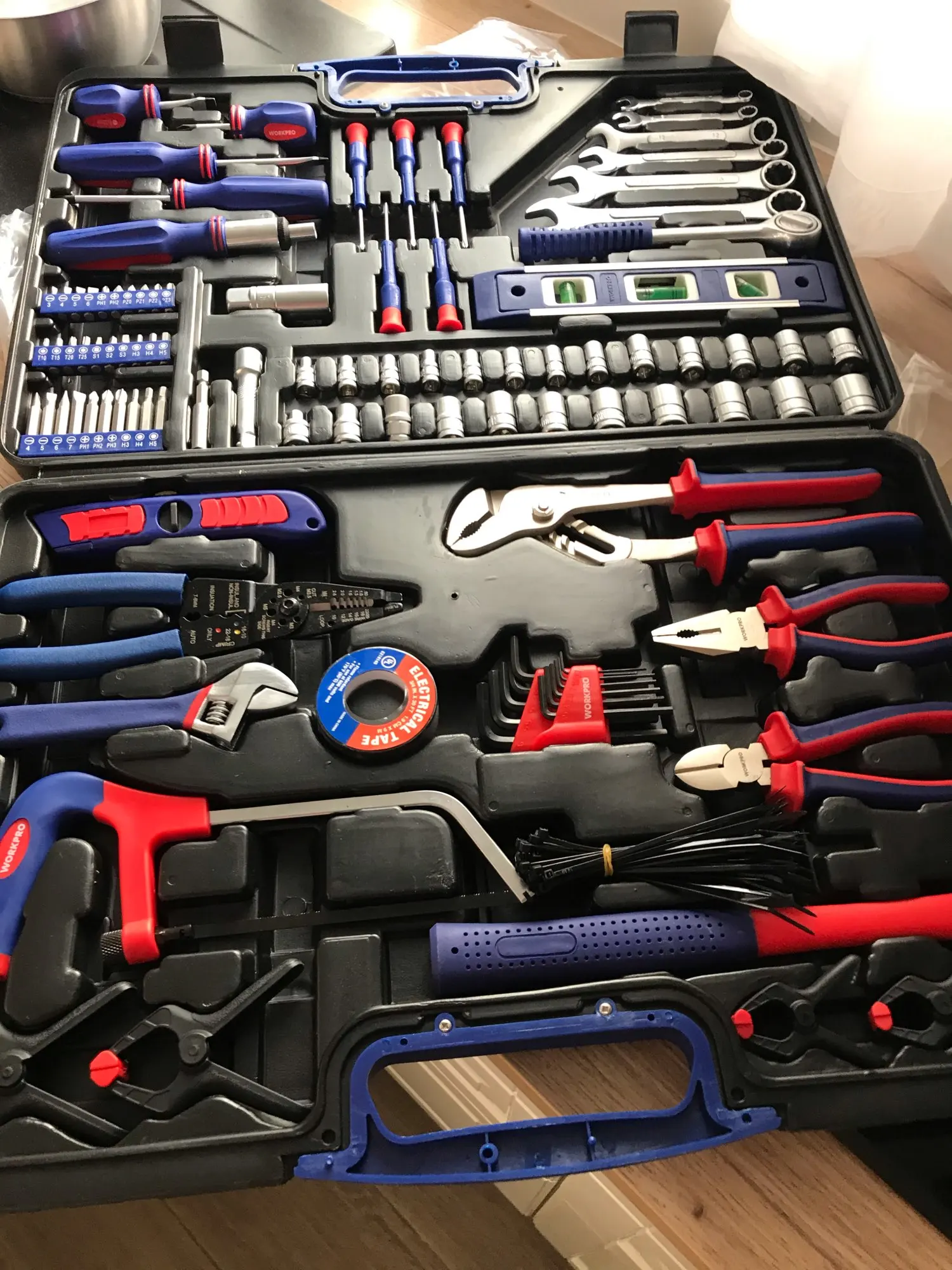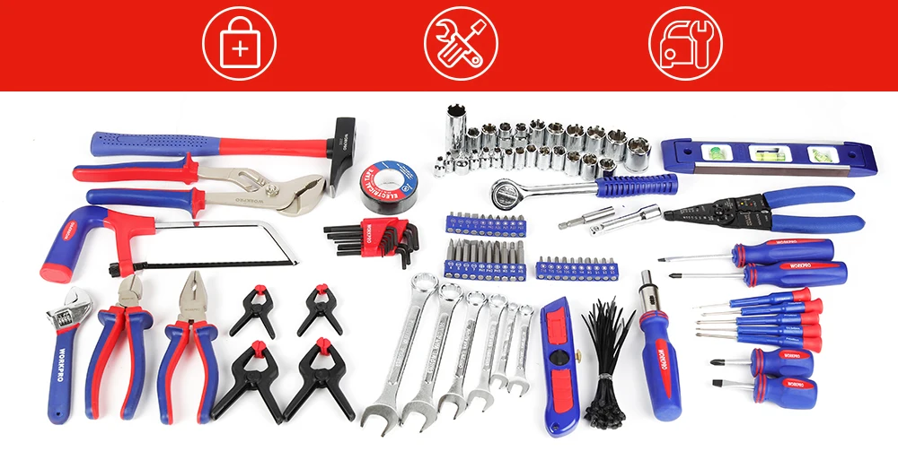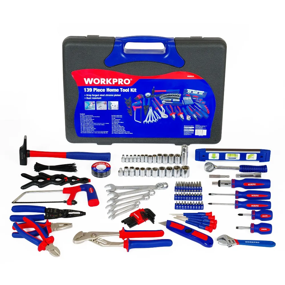 WORKPRO 139 шт. домашние Инструменты Набор бытовых инструментов Набор отверток плоскогубцы Торцевые гаечные ключи гаечный ключ