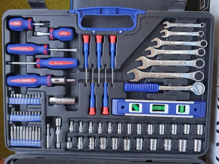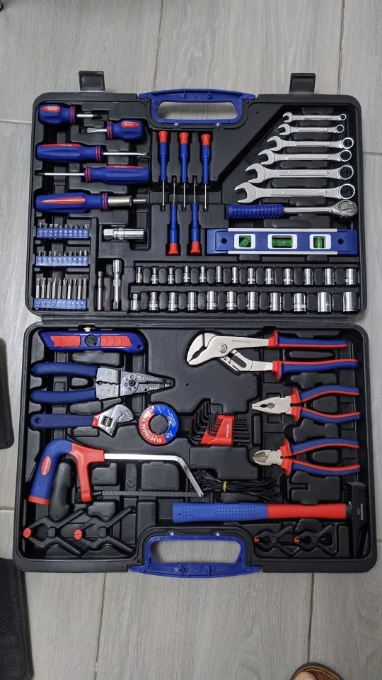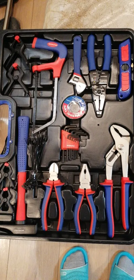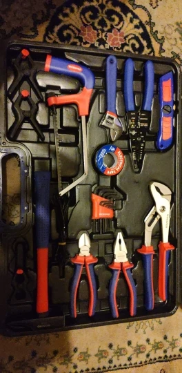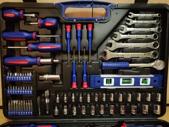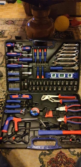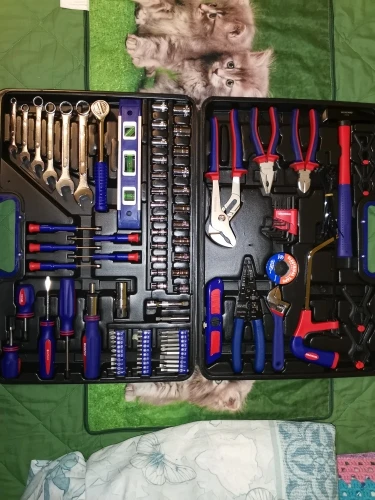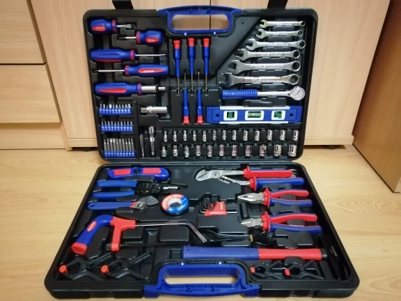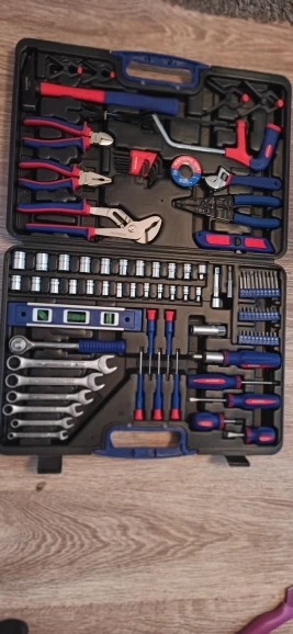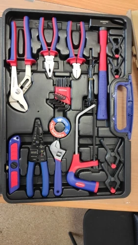 Чемодан имеет все необходимые инструменты для ремонта дома. Я доволен покупкой, доставка прошла очень быструю доставку, прямо под дверью. Рекомендуем такой же чемодан и продавца.