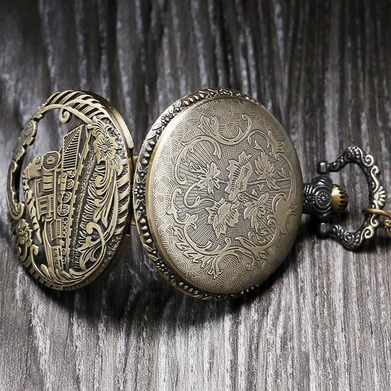 Классический Поезд бронзовые кварцевые карманные часы цепочка Ожере...
