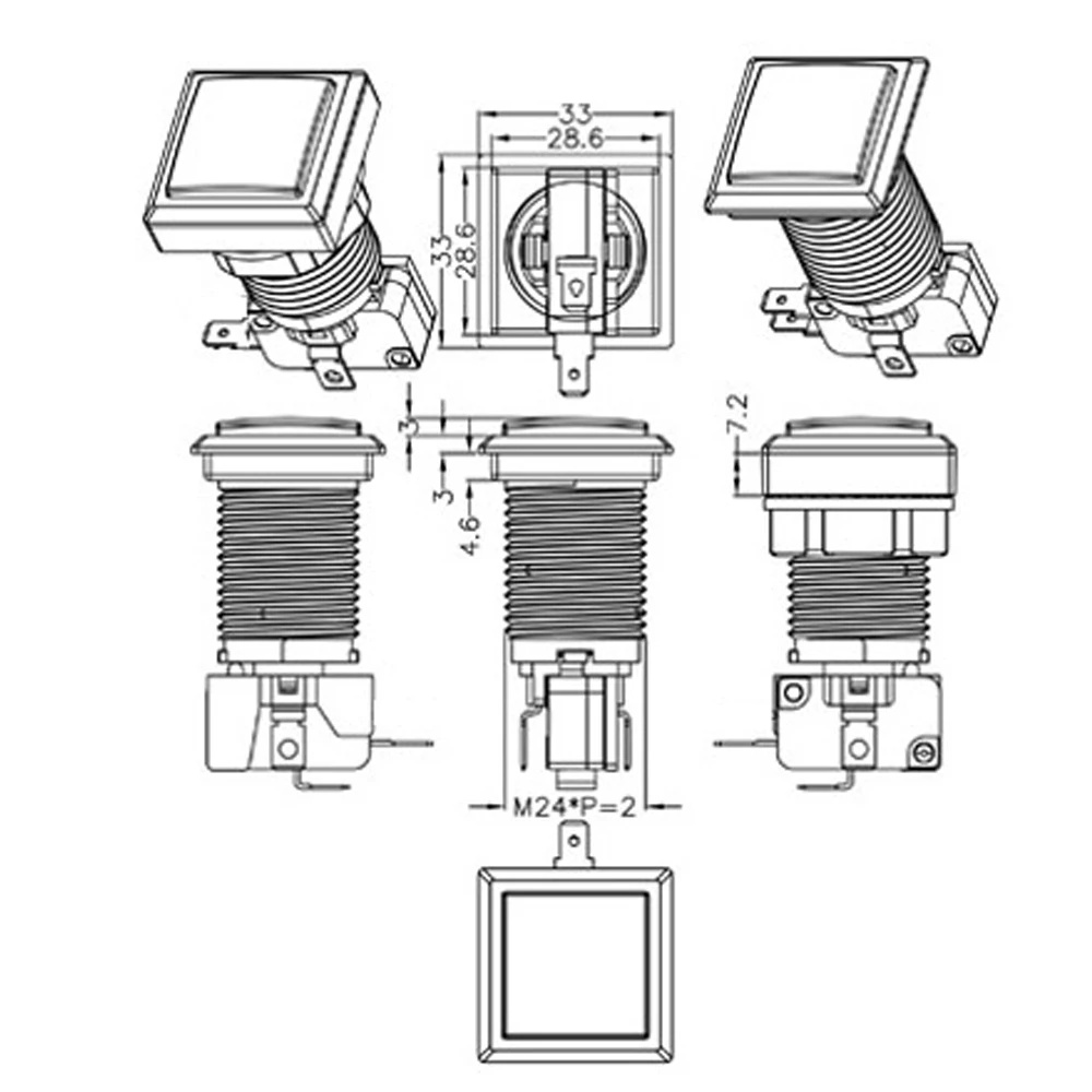 Квадратная светодиодная подсветка 10x33 мм, кнопка с переключателем 12 В для игровых автоматов, работающих от монет