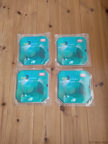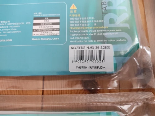 Продавец очень аккуратно приклеил накладки, нигде ничего не отходит. Упаковку от резины продавец положил в посылку. Сама резина довольно медленная, нужно привыкать. Доставка очень быстрая - 12 дней с момента заказа до Москвы