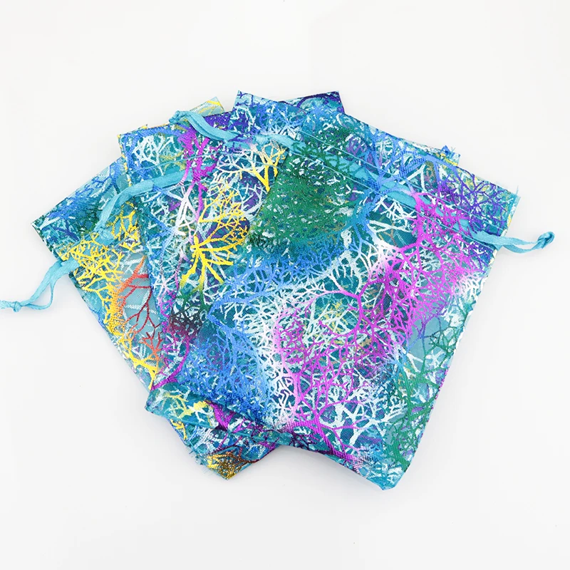 10 шт.лот, синие коралловые сумки из органзы 9x12 см, очаровательные конфетные украшения, упаковочные мешочки сумочки, маленькая подарочная Сумка из органзы