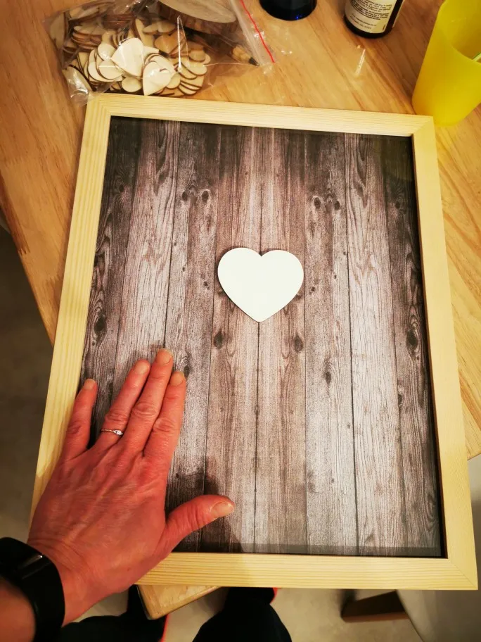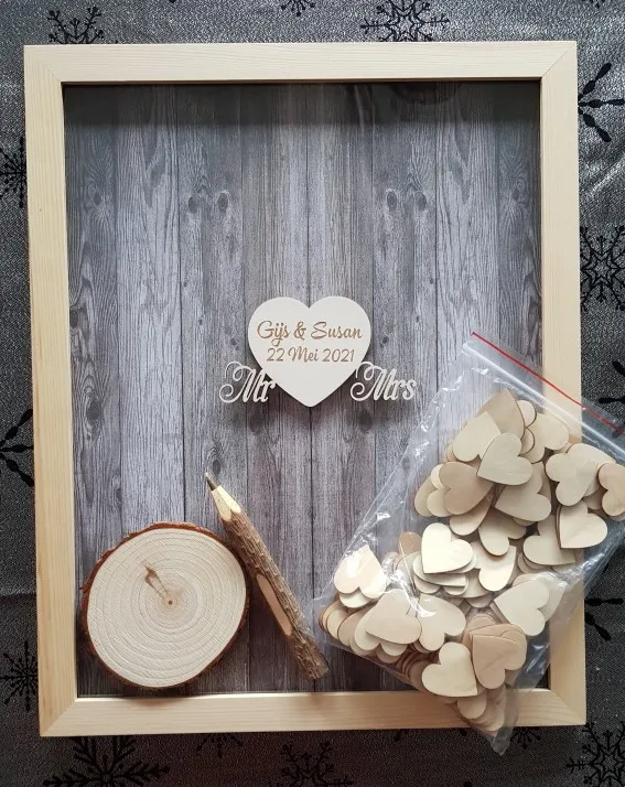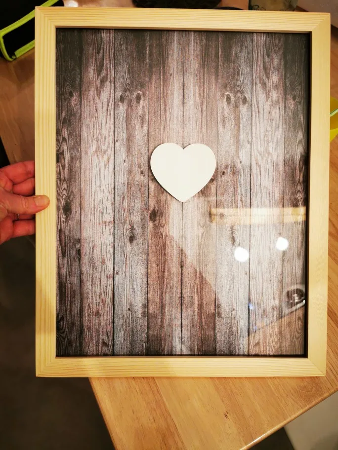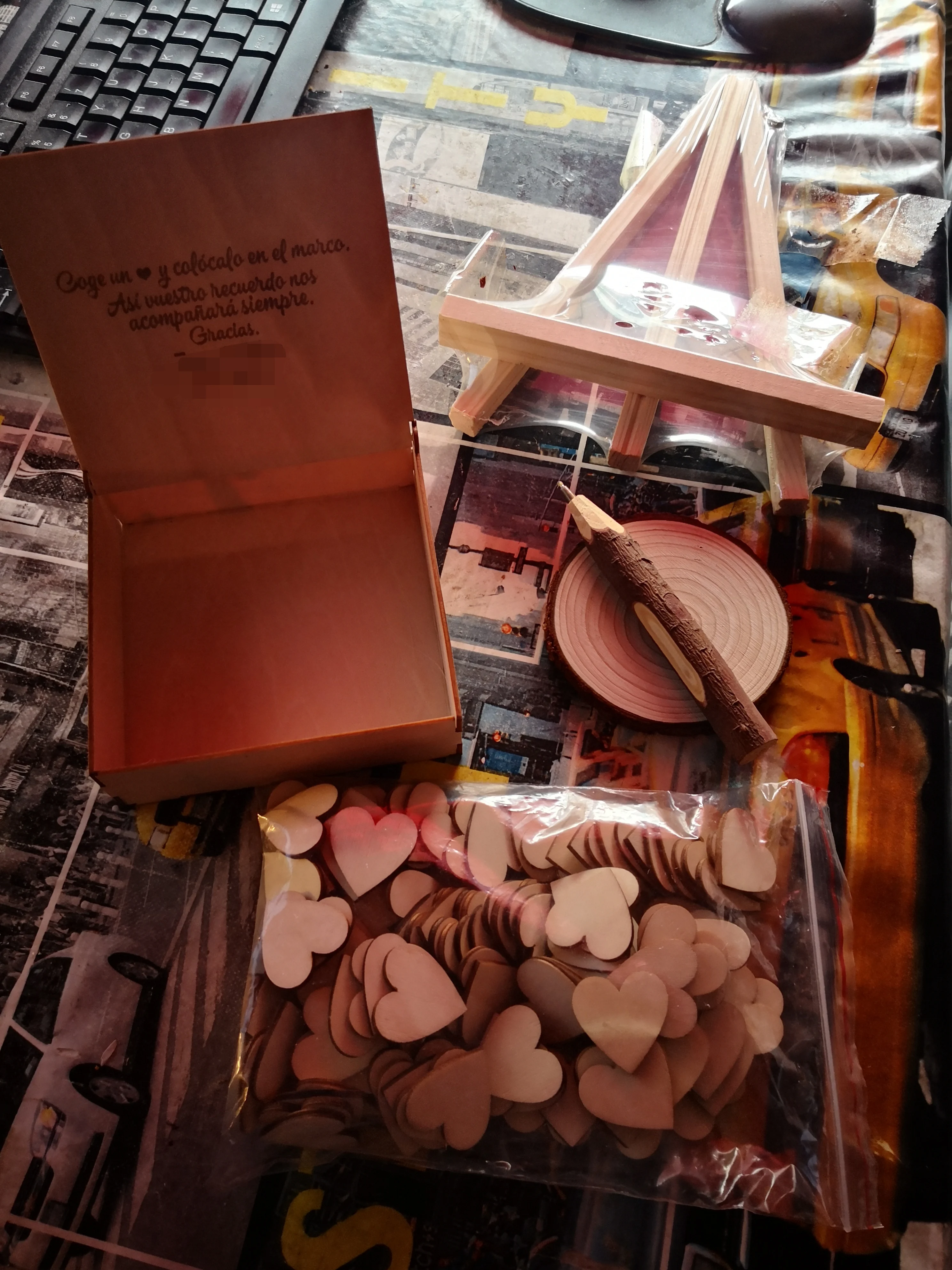 Огромное спасибо продавцу, который несмотря на мою ошибку, и то что товар уже был в печати, согласился исправить все за бесплатно и отправил правильный вариант. Дошло в течении месяца, правда без деревянной коробки для сердец и держателя. Связалась с продавцом, он сказал что в комплект с маленьким размером рамки эти элементы не входят. Не страшно. Рекомендую