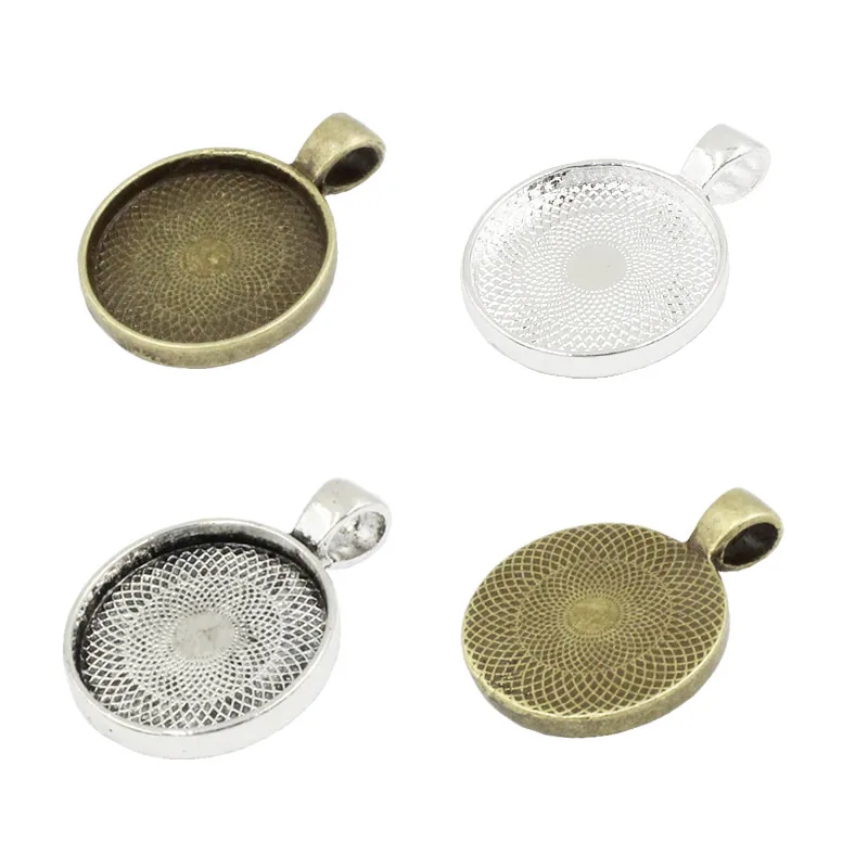 Круглый подвесной лоток 20 мм, оправа для камеистеклакабошона, подвеска из цинкового сплава 20 шт.лот (K05148)