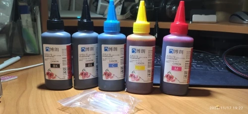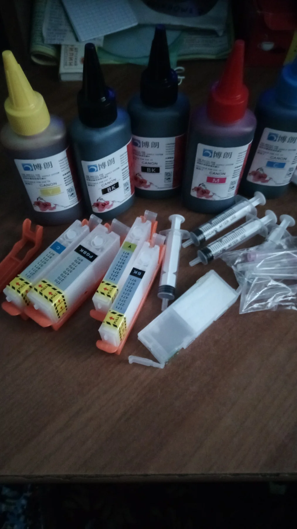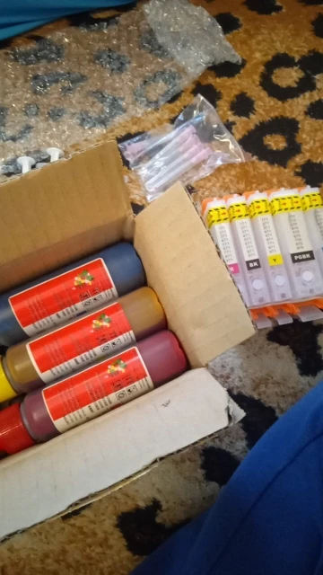 Товар пришёл быстро, упаковка не подвела. НО!!! Вместо синего красителя положили ещё один чёрный... ( установил сразу на Canon 5400, принял как родные!))) А синий, наверное, придётся докупать отдельно...