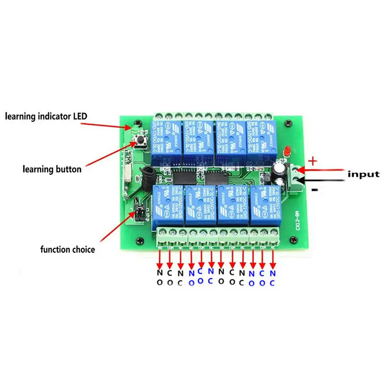 Нажмите кнопку обучения 1 раз, светодиодный индикатор обучения включается, затем нажмите кнопку передатчика, чтобы узнать. Светодиодный индикатор обучения вспыхивает и выключается. Означает, что учитесь успешно.