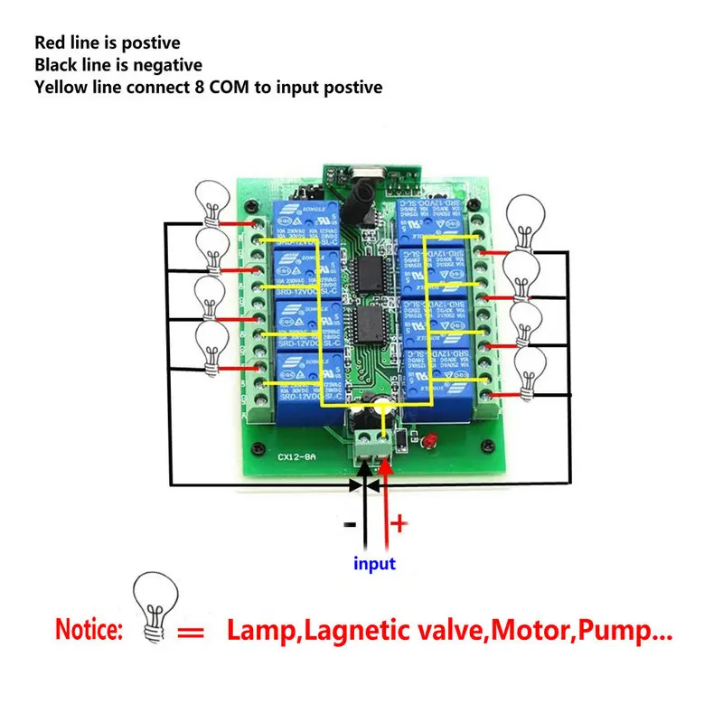 Управление огнями, телевизорами, двигателями, вентиляторами, камерами, видеосигналами, звуковыми сигналами, электрически управляемыми дверями/замками/окнами.