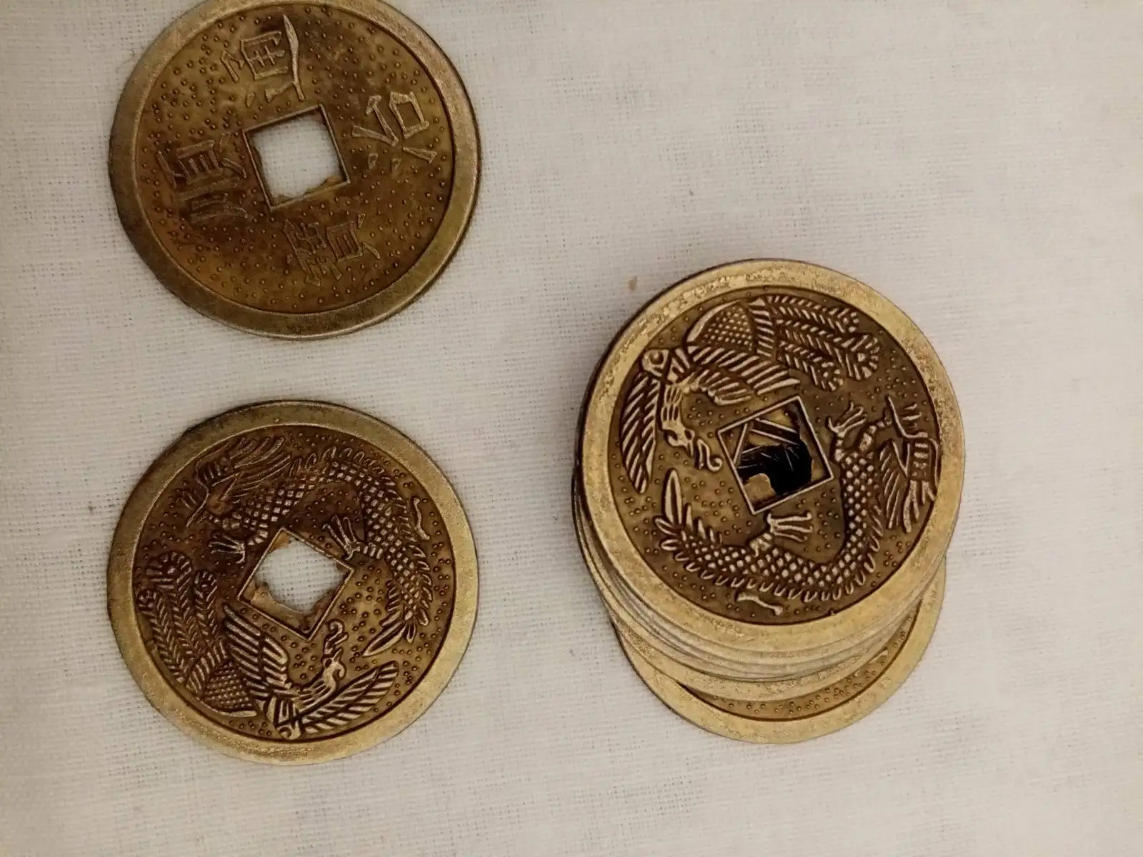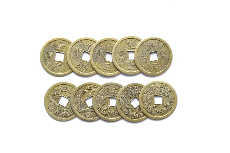 10 шт. 38 мм латунь Китайский древний фэн-шуй удача Монета ХОРОШЕЕ приносящий удачу Дракон и Феникс антикварное богатство коллекция денег подарок