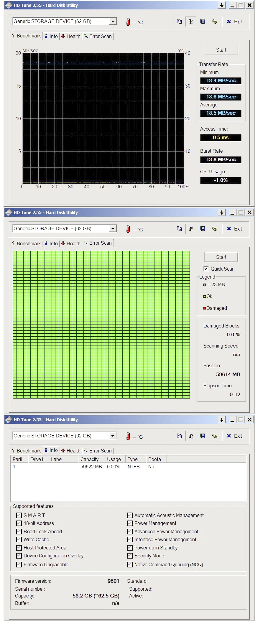 Пришла быстро 64 гига, поставил в телефон, емкость соответствует, заполняется полностью. скорость визуально средняя. не могу проверить, компьютер флешку не видит через обычный картридер SDHC. Телефон с флешкой не тормозит, не виснет. продавец положил подарок. буду ее жеско тестить, качать торренты если что случится дополню отзыв