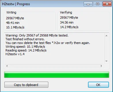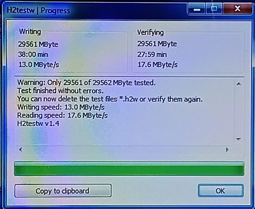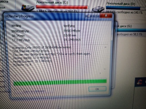 Все работает. Дошла быстро в общем с другими товарами заказе. Протестил h2testw. Результаты не сохранил. Спасибо!