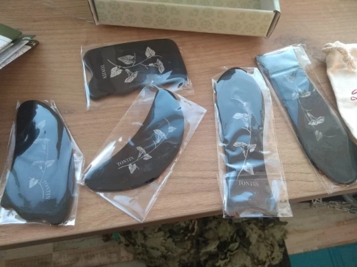 Скребки понравились!Посылка шла три недели до Архангельска.Для подарков классные!На одном скребке маленькая царапинка,но не критично,скребки удобные для массажа Гуша хорошие.Рекомендую товар и продавца!Товар в коробочке,подробная инструкция по точкам и зонам воздействия.Скребки гладкие и удобные в использовании.Насчёт подлинности материала не знаю,но за такие деньги качество хорошее.Покупайте себе и на подарки!С продавцом не общалась,не пришлось.