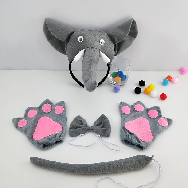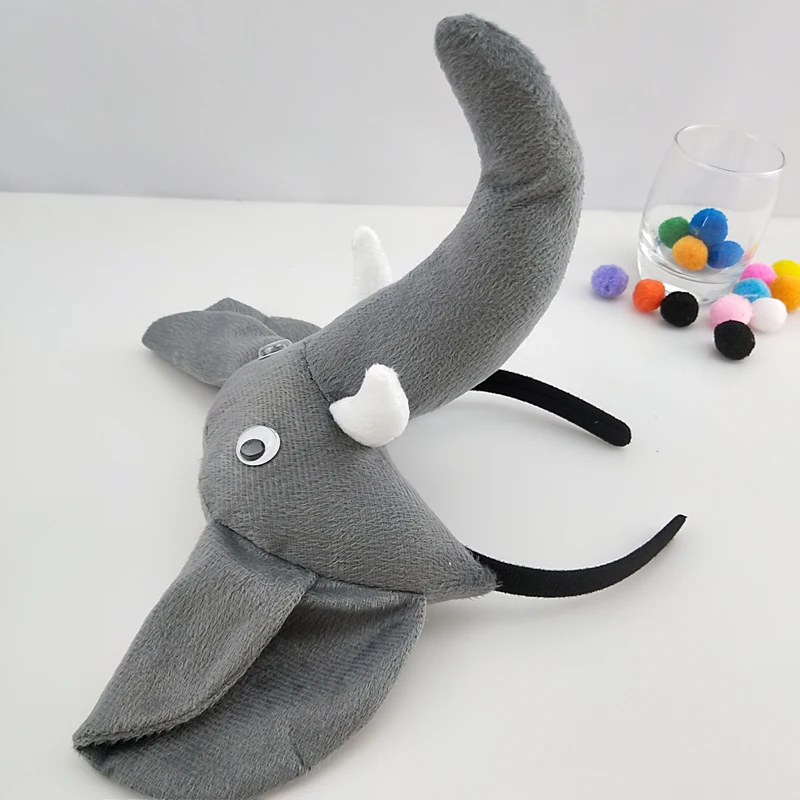 Детская 3D повязка на голову со слоном для вечерние, ободок, хвост, искусственные животные, косплей, плюшевые повязки для волос на Хэллоуин, день рождения, Пурим