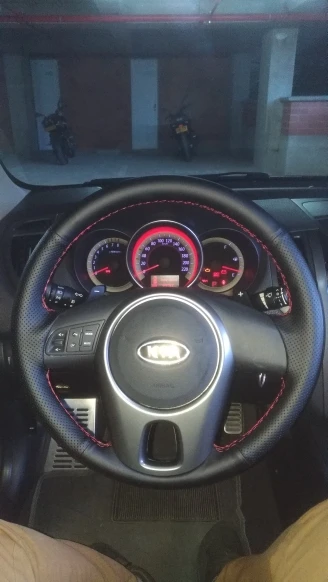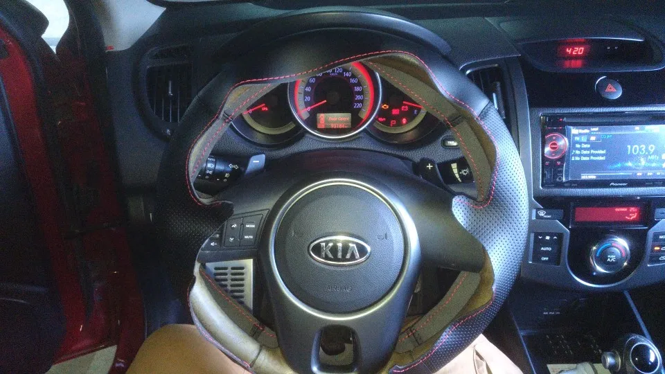 Чехол для руля, кожаный, блестящий, черный, прошитый вручную, для Kia Forte, Kia Soul, Kia Rio 2009-2011