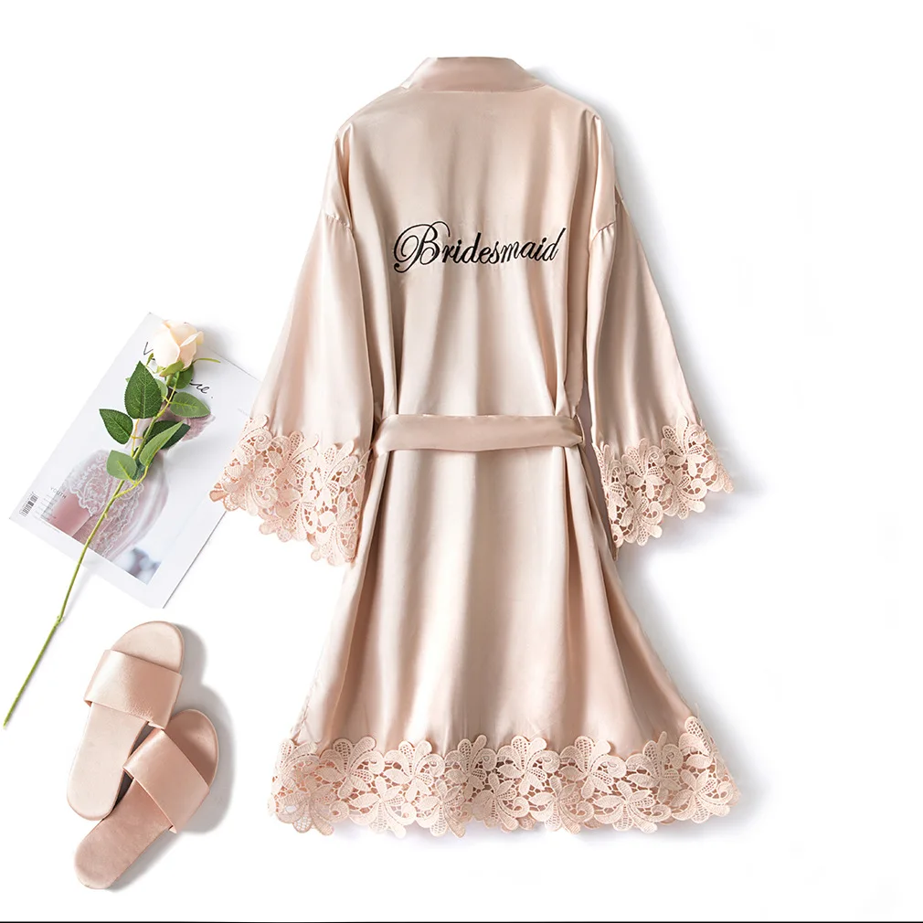 Халат женский кружевной, однотонный, с вышивкой, Размеры M, L, Xl