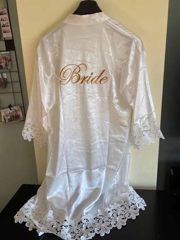 Качество отличное, но... Будьте внимательны - тут часть халатов с надписью на спине. Я с телефона заказывала и недосмотрела: заказала маме халатик на подарок, а там надпись на спине: подружка невесты... А мама у меня вещи с надписями на дух не переваривает... В общем... Без халата у меня мама осталась... Но это моя вина. А качество великолепное. Рекомендую.