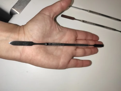 Отличный шпатель, великолепно лежит в руке и прекрасно скользит по материалу. Использую для укладки термопасты и нанесения клея ВК-9. Я очень доволен, не смотря на двухмесячную доставку.
