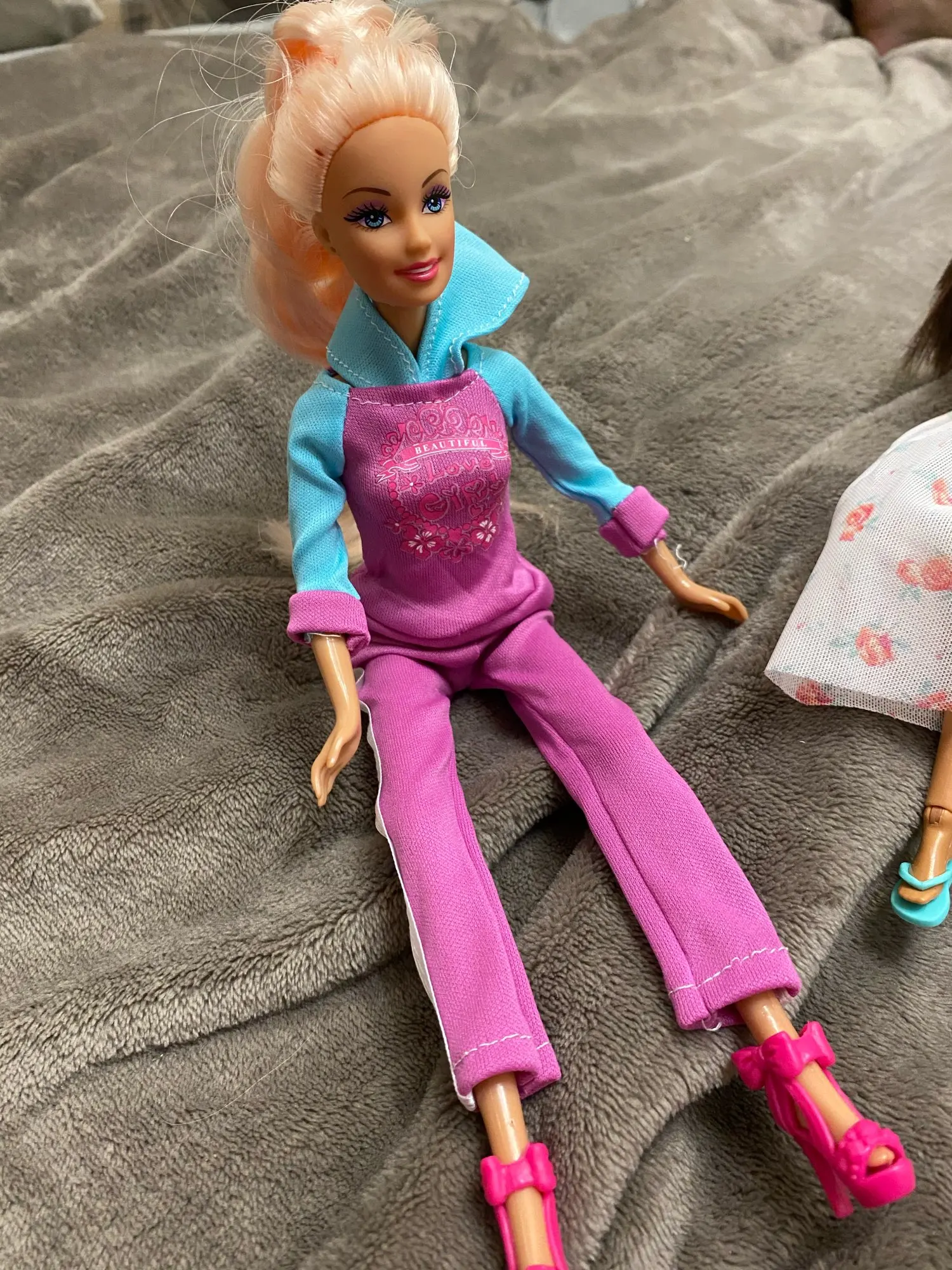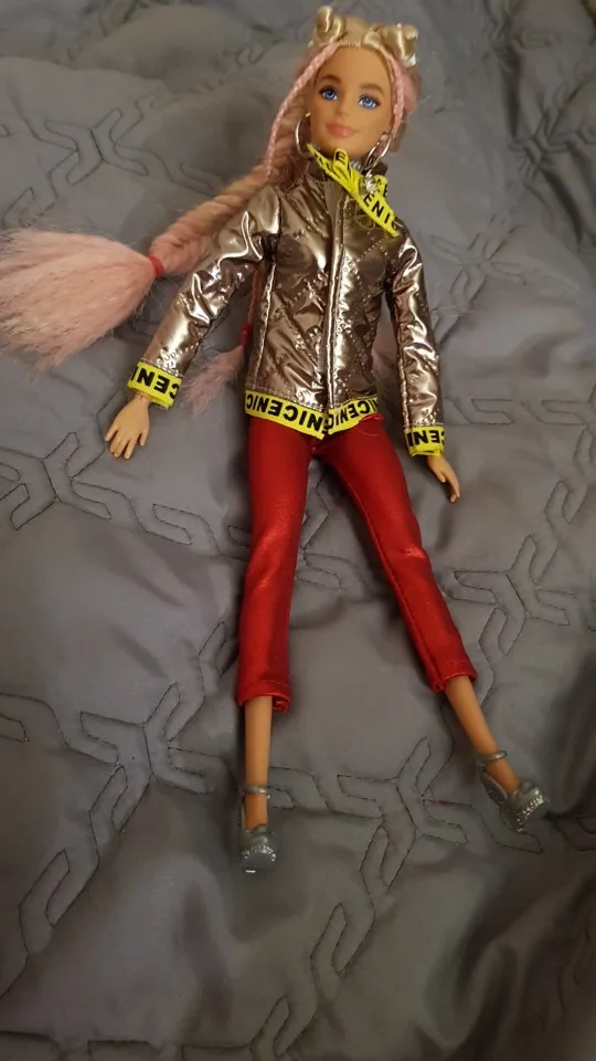 Спорт костюм похуже, маловат. Короткие штаны, смешной капюшон))) но в целом хорошо. Заказывали на обычную Барби стандарт