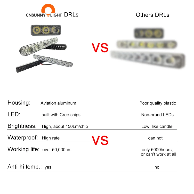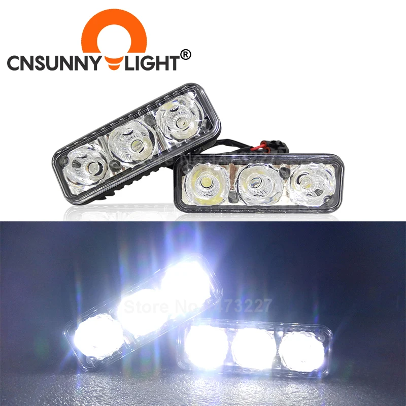 Светодиодные дневные ходовые огни CNSUNNYLIGHT, водонепроницаемые, из алюминия, с линзой, 12 В постоянного тока, белого цвета, 6000 К, противотуманные фары