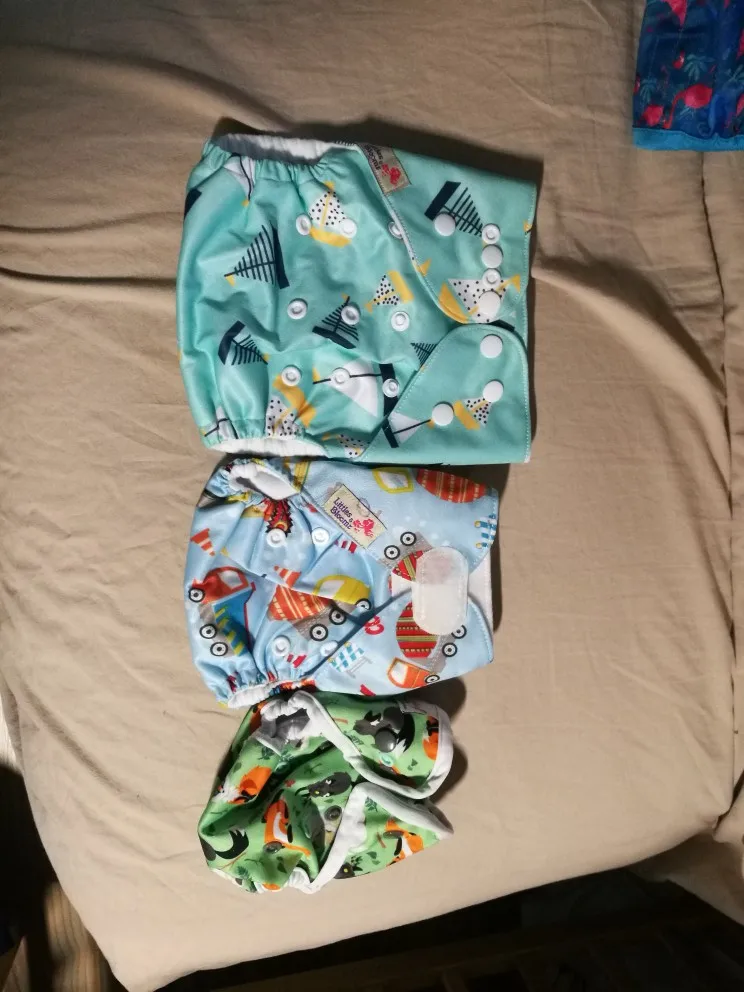 Очень красивые и мягкие подгузники. Suedeckloth (mikropolar) внутри. Подходит для моего ребенка весом 8 кг. Между ножками 12,5 см, которые не слишком широкие. На фотографиях сравнение с другими L & B OS подгузниками. Самый маленький-это чехол для подгузников с рисунком Катала.