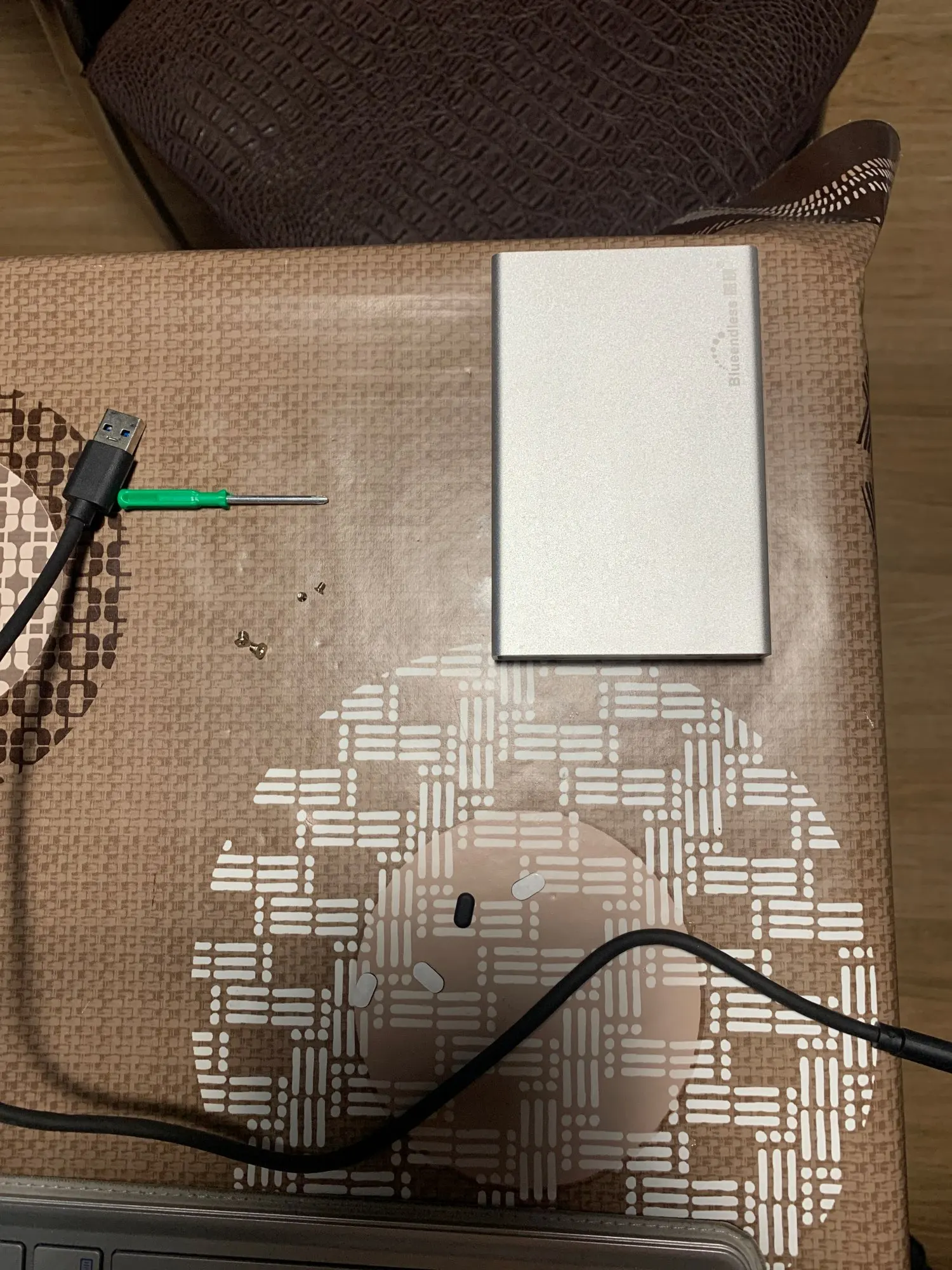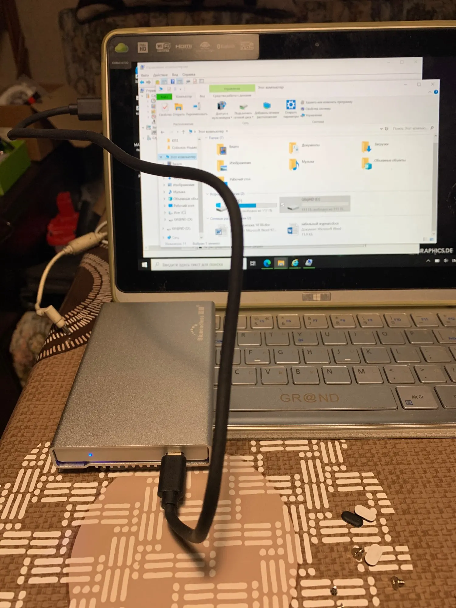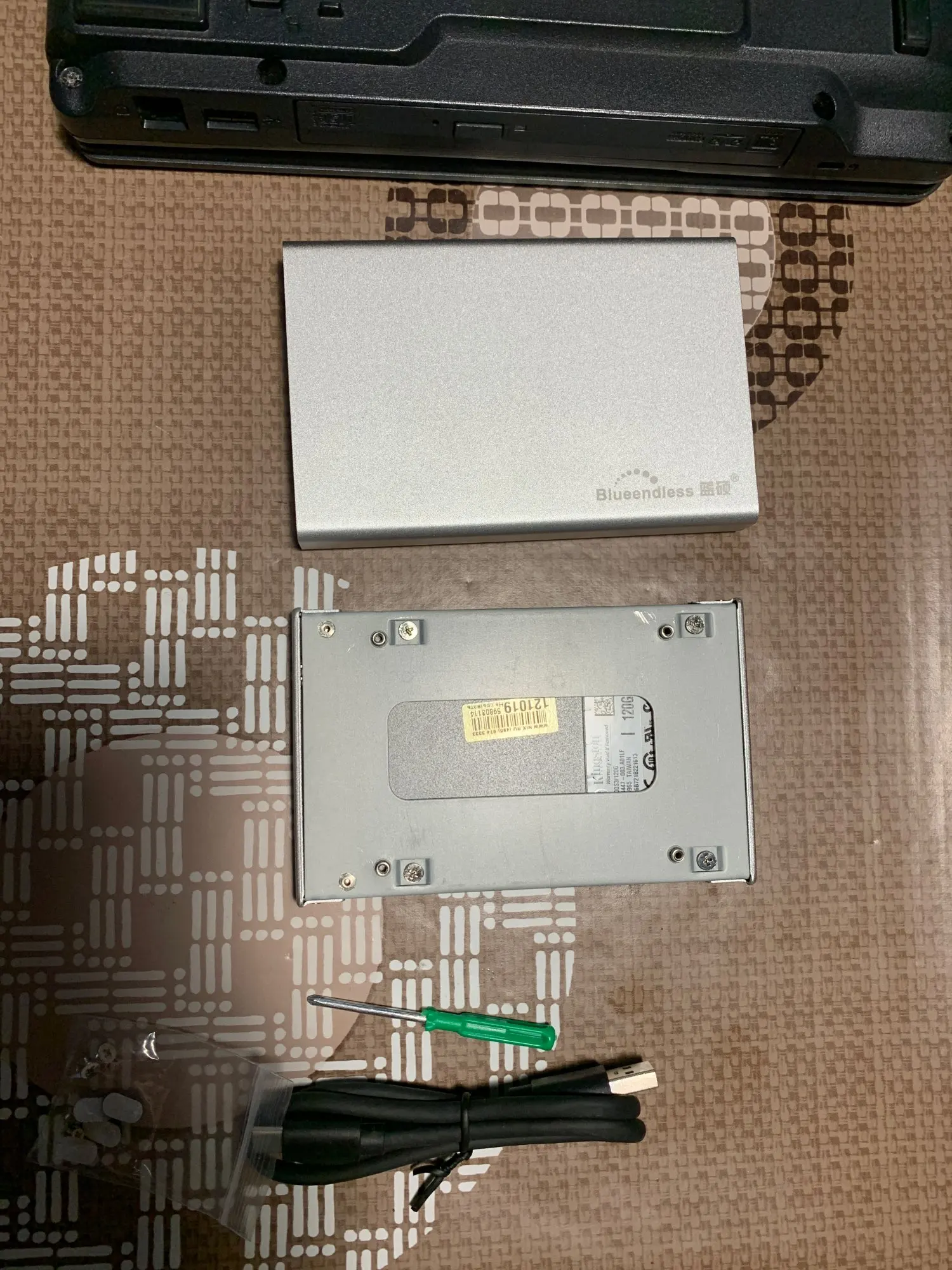Товар получил, корпус цел, контроллер tip-C работоспособен, алюминевый профиль корпуса довольно таки жесткий желательно ножки приклеит другие немного больше и на другом месте. Их (ножки) при смене жёсткого диска придётся отклеивать так как они наклеиваются на крепежные винты, если есть возможность приклеить дополнительные, ножки можно наклеить на другое место и обеспечить без проблемная сменяемость диска при необходимости
