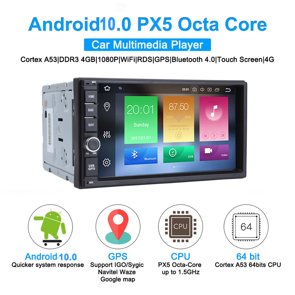 Автомагнитола Bonroad 2DIN, 7 дюймов, Android 10, 4 Гб + 64 ГБ, 2 Гб + 32 ГБ, GPS-навигация для NissianToyatoQashqai X-TrailHiluxk2Vw