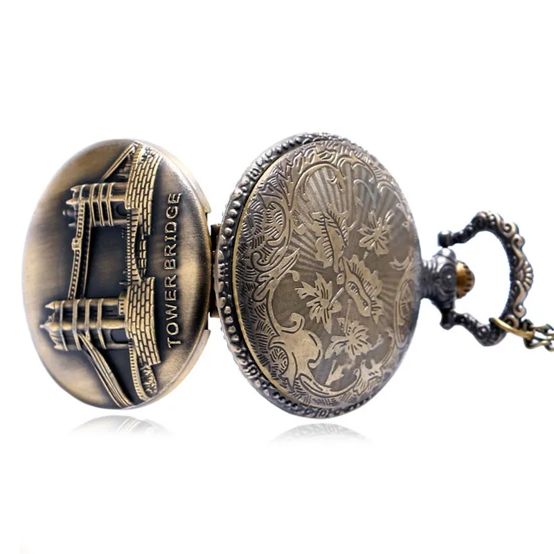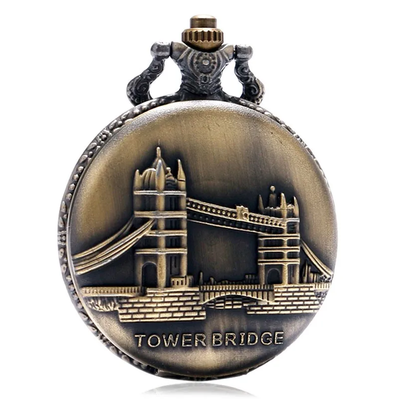 Лондонский Тауэрский мост, винтажное ожерелье, сувенир из Британии для друзей, мужские и женские подарки, кварцевые карманные часы с подвеской, Relogio De Bolso