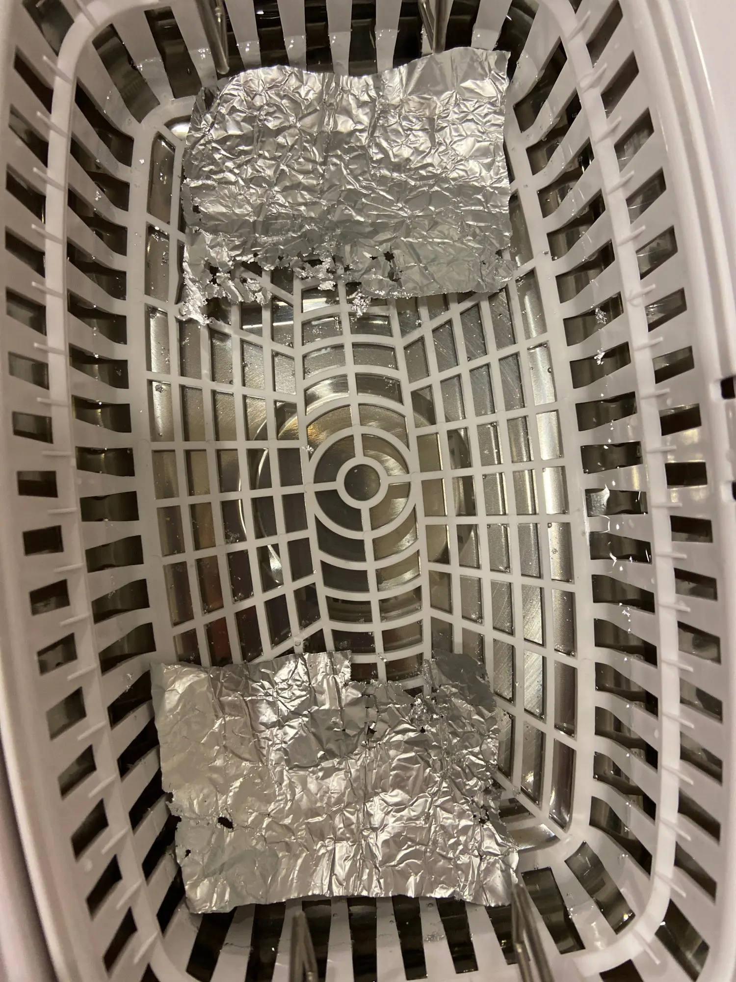 Быстро отправили, быстро доставили! Мойка хорошо упакована, пришла в целости. Работает. Протестировала 2 раза с фольгой. Первый раз -дырки в середине. Второй раз положила кусочки по краям, но дырки все же ближе к середине. Не знаю насколько это критично( возможно нужно больше времени) на первом фото большой кусок 3мин, на втором маленькие куски 3мин, на третьем маленькие куски 9мин (немного начали появляться дырки ближе к краю)