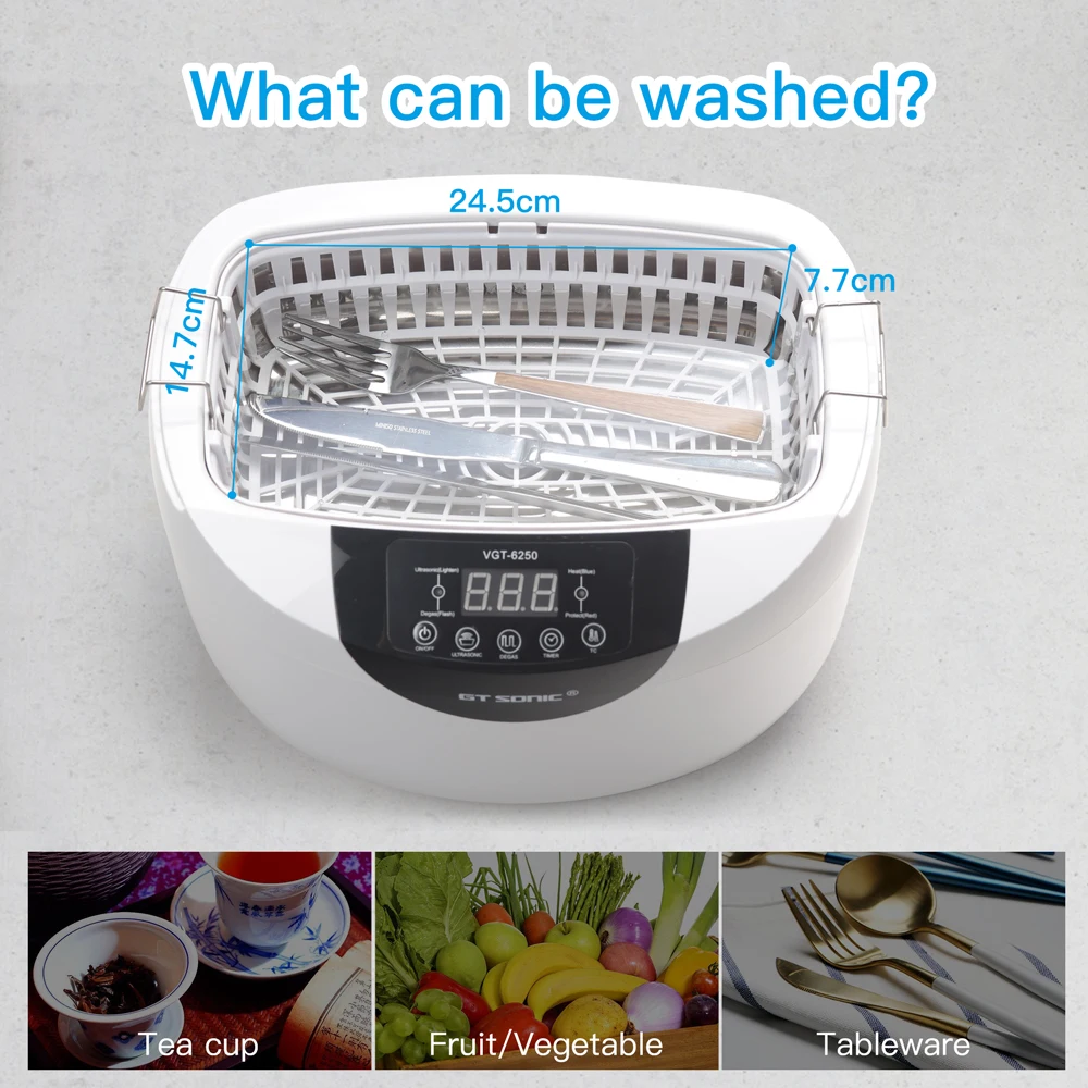 GTSONIC VGT-6250 цифровой ультразвуковой очиститель 2500 мл для фруктов и овощей дома кухня ультразвуковой ванны