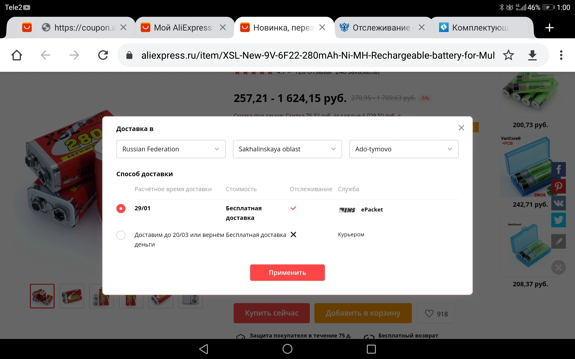 Выбирал товар в том числе и по доставке. Отправка товара заявлена через AllExpress. На самом беле продавец отправил товар другой компанией со скоростью черепахи. Сам товар продавец отправлял очень долго... Отправка прям в последний день.... Я получил все посылки которые были куплены 5амного позже этой покупки. На все письма продавец так вразуминельного ответа не дал. . Я Не рекомендую покупать у этого продовца