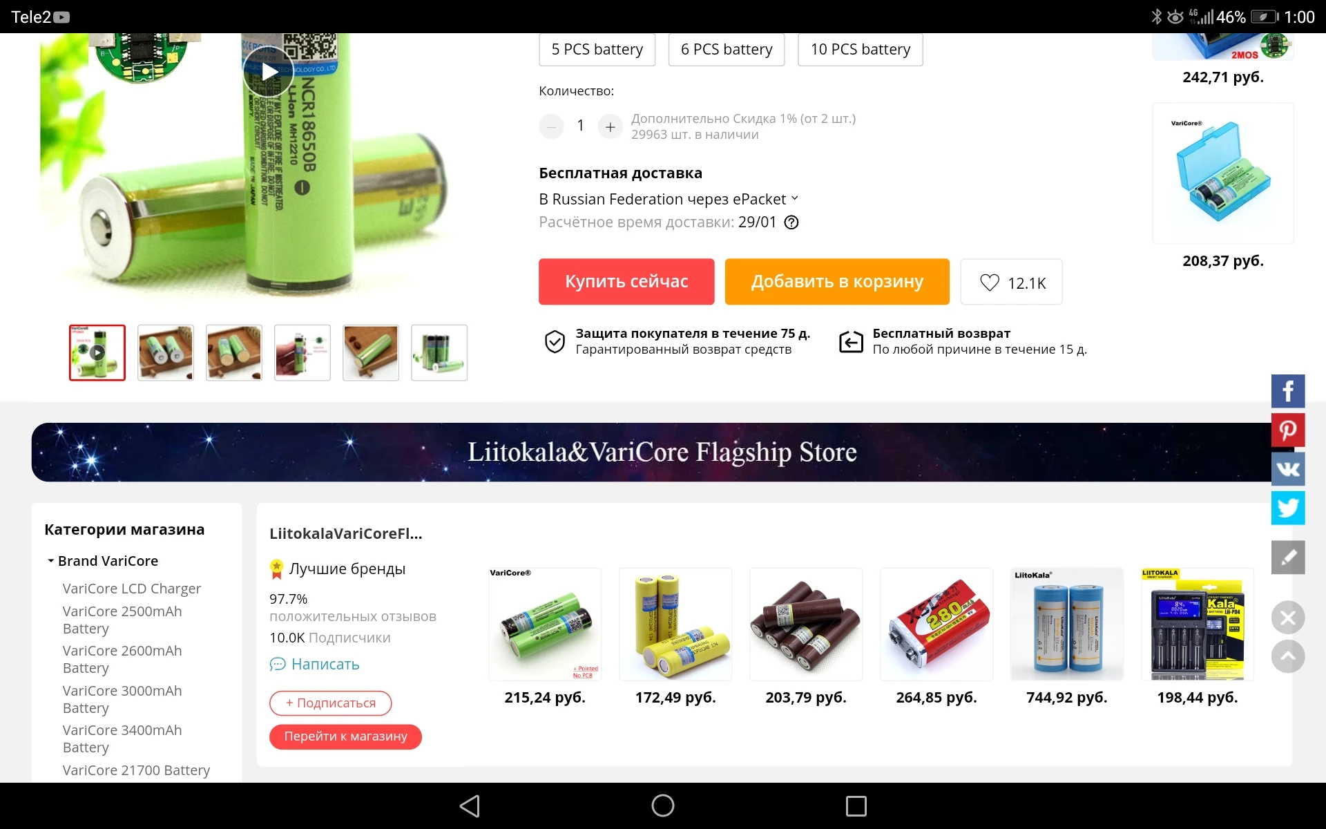 Страна: RU Socket Standard: European plug Доставка: Standard Shipping 15.01.2021