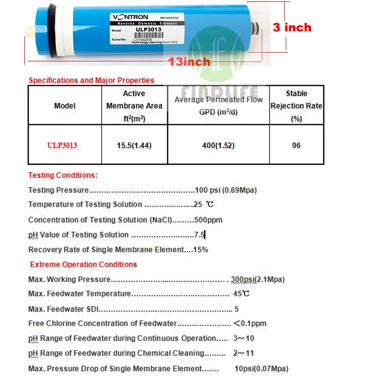 Модель 2016 года; новый стильВонтронФильтр для жилой воды ULP3013-400 +Мембрана обратного осмоса 400 gpdИспользуется для системы обратного осмоса