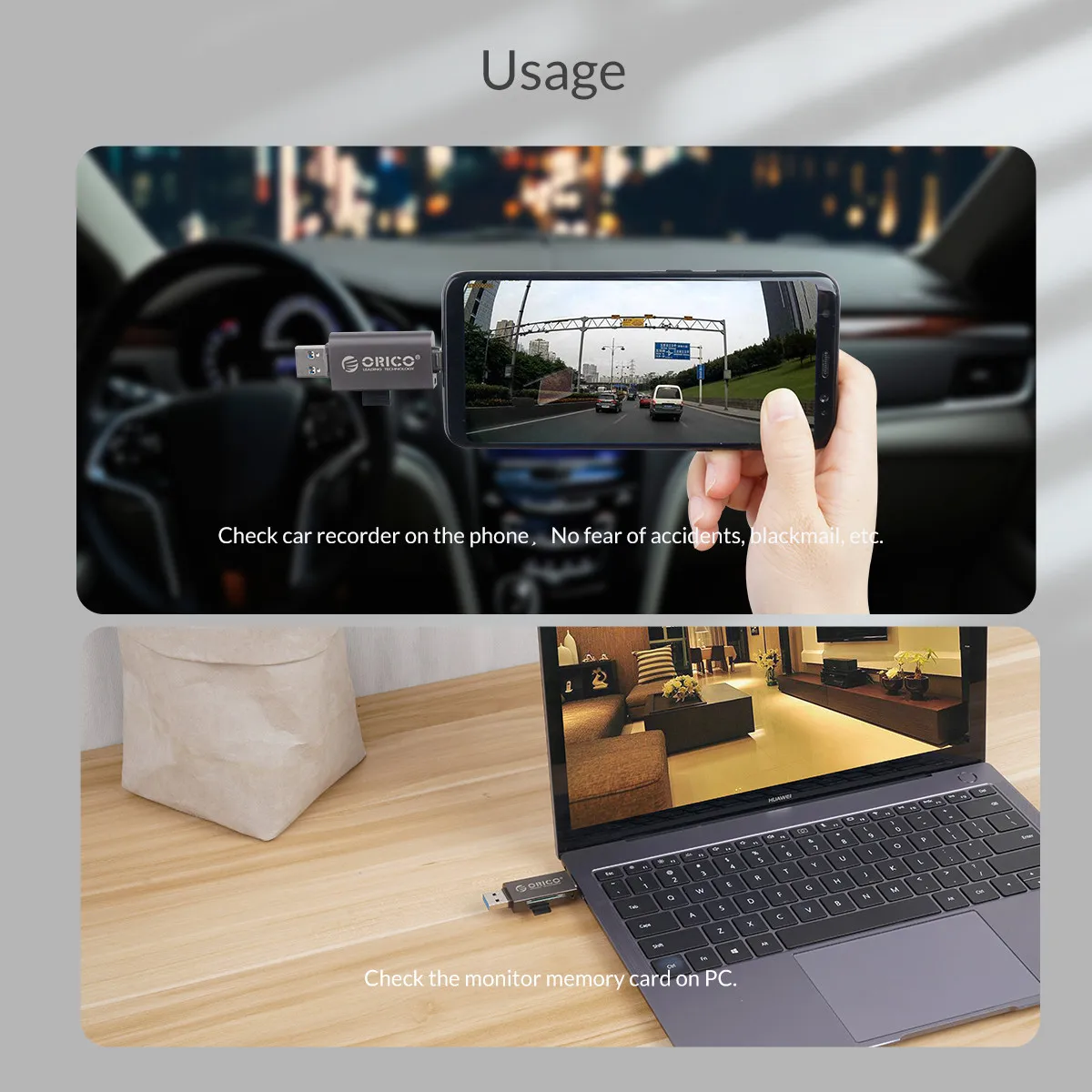 Кардридер ORICO USB 3,0 TFSD, мини-кардридер USB C с поддержкой SDTF с многофункциональным дизайном, черныйбелый