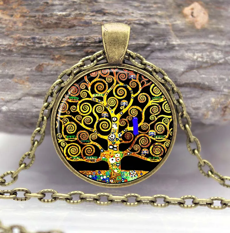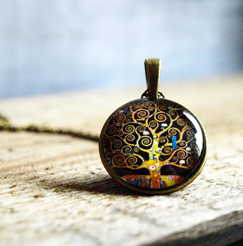 Лидер продаж, кулон Древо жизни Густава Климта, ожерелье, художественное дерево, ювелирные изделия, ожерелья и подвески