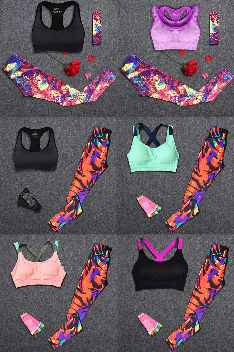 Женский спортивный костюм, спортивная одежда для фитнеса, спортивная одежда для бега, тренировок, топ, бюстгальтер, Спортивные Леггинсы, Экипировка для йоги, комплект с повязкой на голову