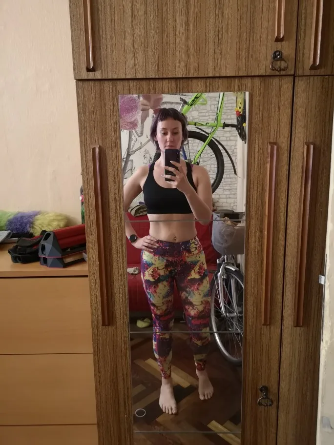 Доставка в СПб - 3 неделе с выдачей в Пятерочке. Снимаю одну звезду за то, что вместо повязки в цвет штанов положили носочки с пальцами. А я только из-за повязки и заказывала комплект, а не штаны отдельно. Лямки у топа не розовые, а фиолетовые. А так комплект отличный. Хорошо сидит, не просвечивается. Вообще штаны такого типа я заказывала 4 года назад, и им реально нет сноса. Это лучшие мои спортивные леггинсы. Мой рост 178, вес 73, объёмы 96/69/102.