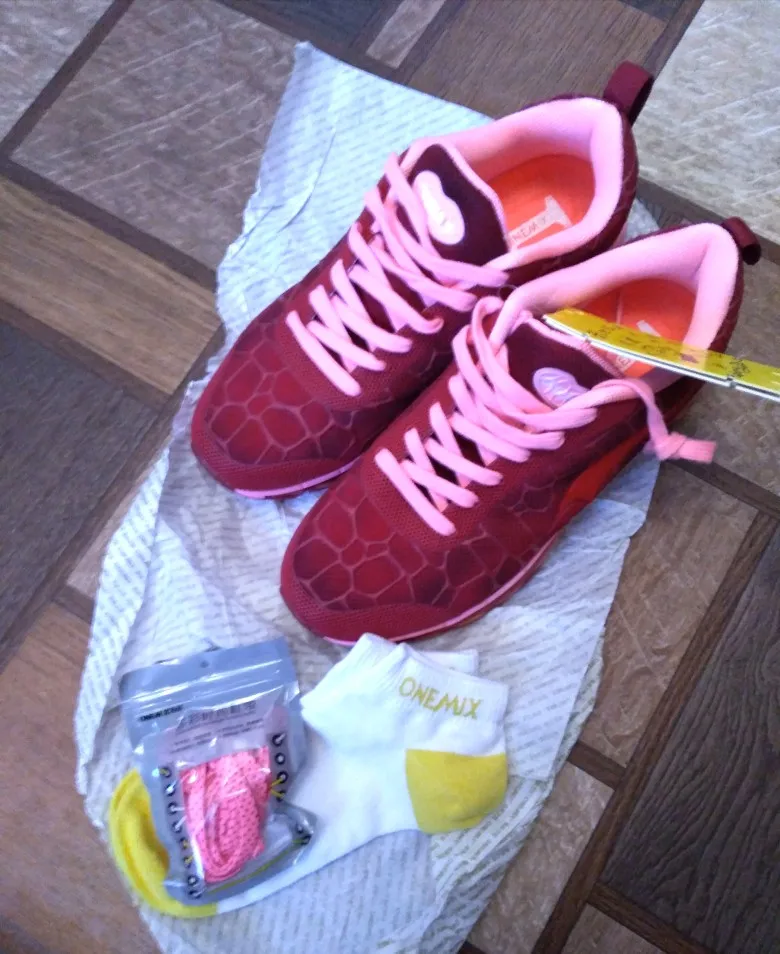 Кроссовки отправили в тот же день. Продавец положил в подарок носочки и шнурки. Подошва жестковатая. Выбирала по размерной сетке немного большемерят.