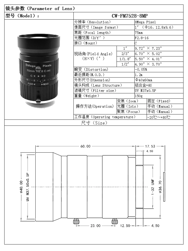 Объектив камеры видеонаблюдения HD 8 Мп 75 мм C CS крепление ручная Радужная фокусировка F1.8 апертура 1 дюйм формат изображения камера безопасности промышленный объектив