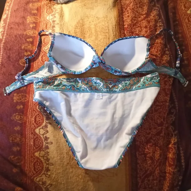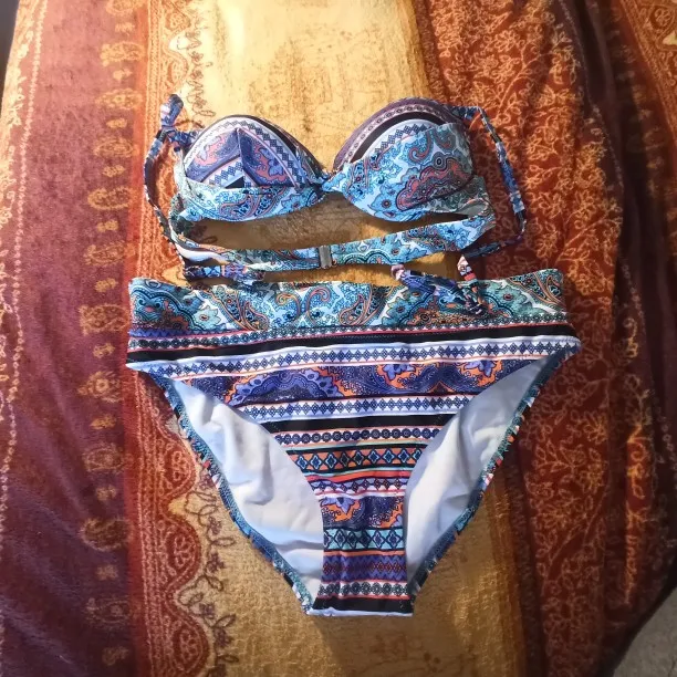 Купальник хорошего качества,расцветка яркая,красивая.По размеру немного маловат на xml не тянет,маловат размер ближе к L.