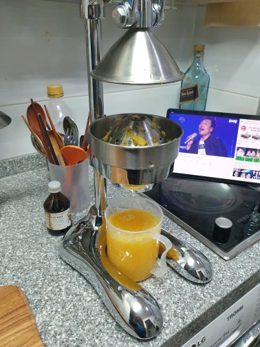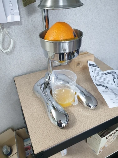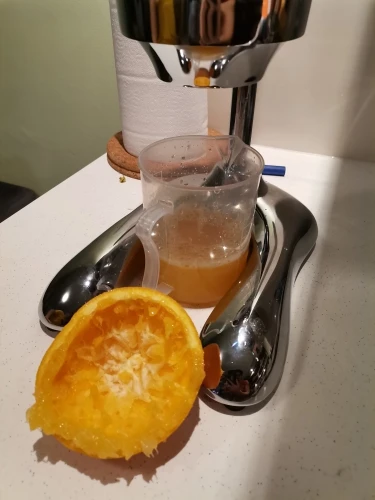 Очень красивый, тяжёлый, из двух апельсинов стакан сока, прибыл быстрее чем ожидали, подарок удался, надеемся работать будет долго. Огромное преимущество перед остальными, работает бездумно, можно не будить спящих, утром потихоньку приготовить домочадцам свежевыжатый сок.