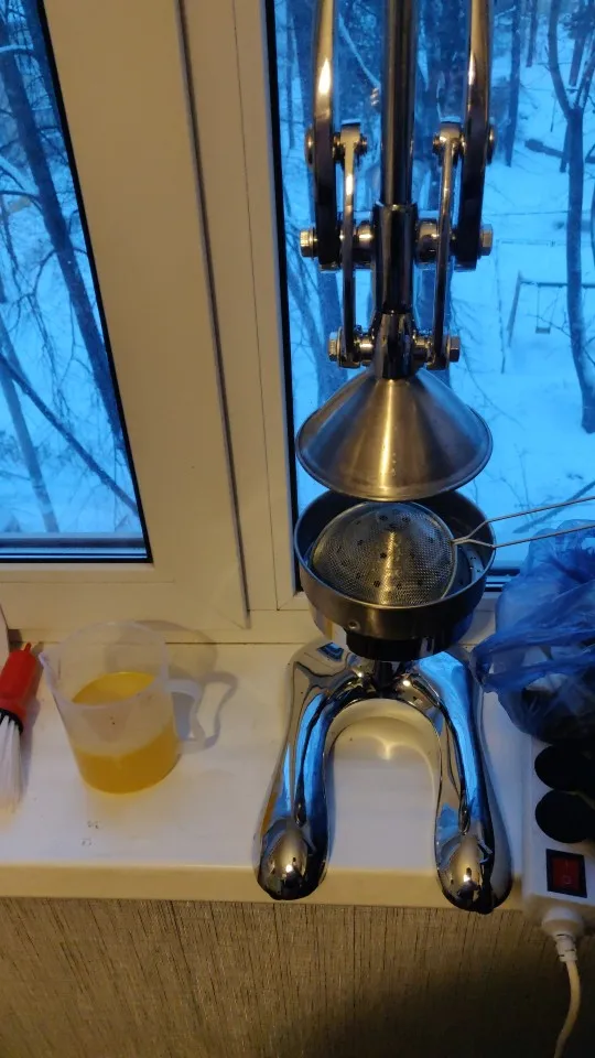 качество товара на первый день использования не плохое. мне всё нравится. Из нюансов хочу уточнить что два самореза под шестигранник ( на фото я на них указываю пальцем) можно перекрутить выше, за счёт этого поднимется средняя опора и фрукты будет прижиматься более плотно, а значит и выход сока будет больше.