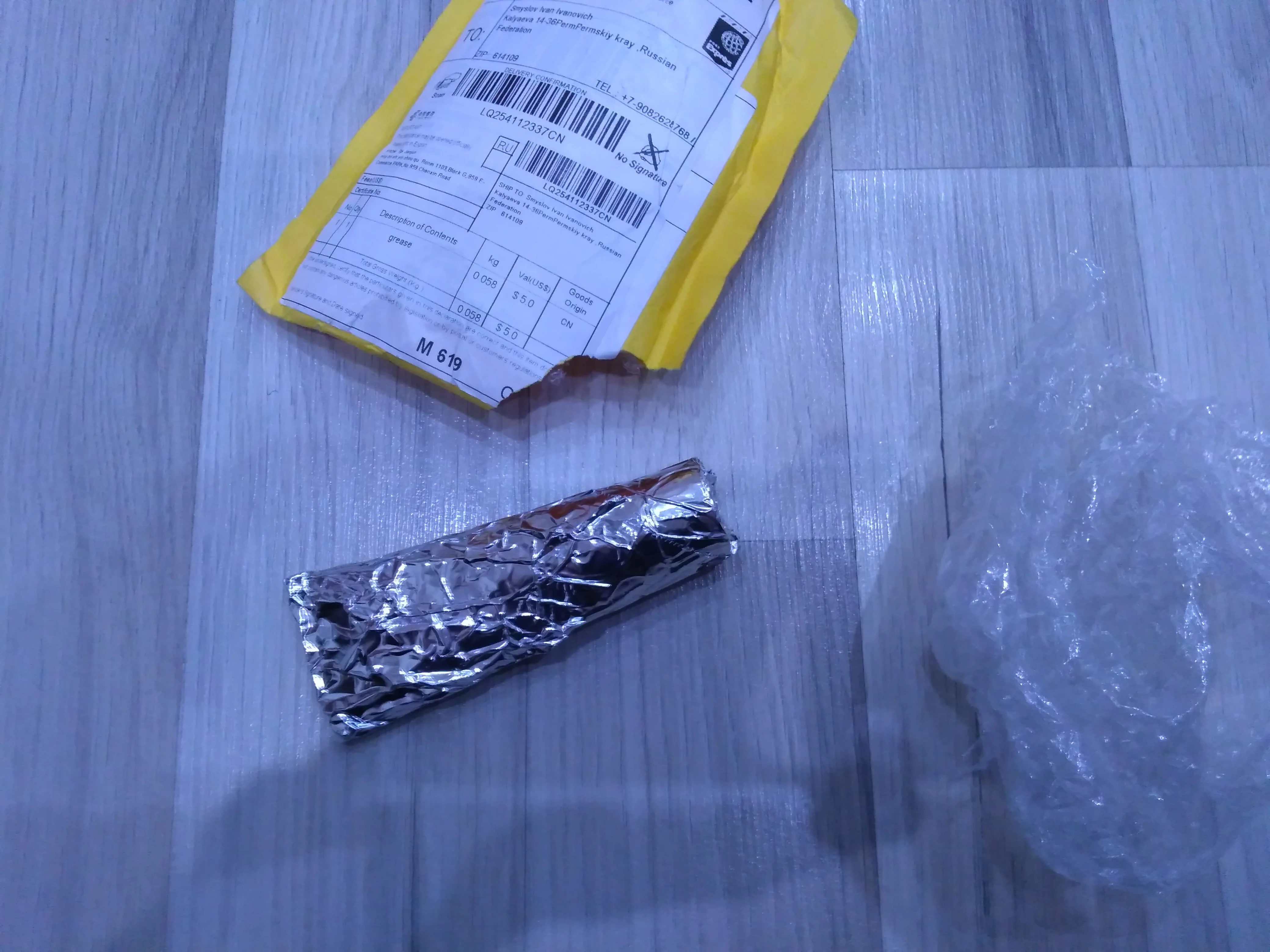 в посылке не было смазки! забыли положить? целостность упаковки не нарушена, следов вскрытия нет