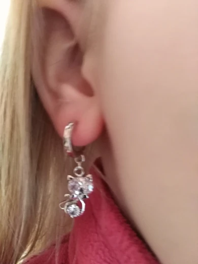 Очень красивое, качественное украшение. Серьги на маленькую мочку уха, больше подходят для ребенка. Быстрая доставка.