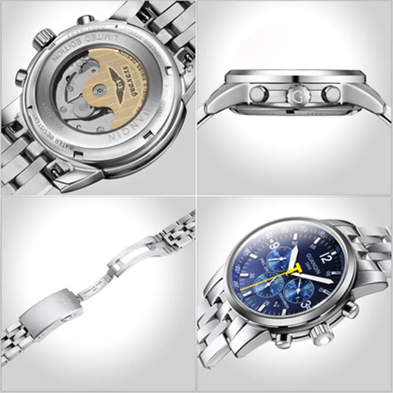 Новинка мужские часы GUANQIN деловые светящиеся Роскошные брендовые механические часы с датой модные повседневные водонепроницаемые мужские наручные часы