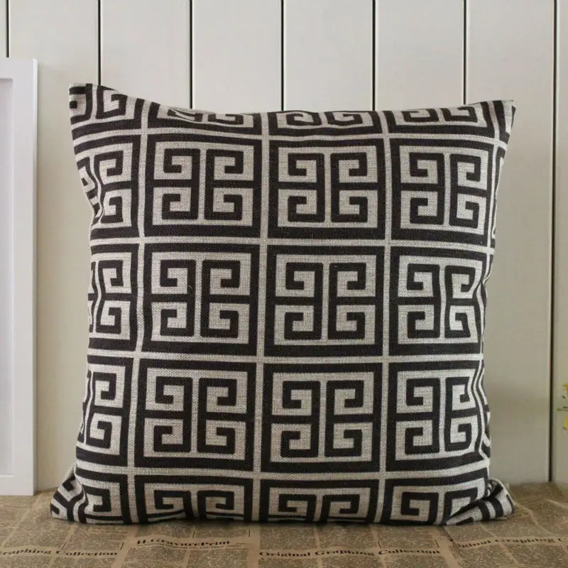 LINKWELL 18 "x 18" Черная Геометрическая цепь узор дизайн Геометрическая подушка из мешковины чехол для сиденья дивана Подушка Чехол Наволочка Чехол