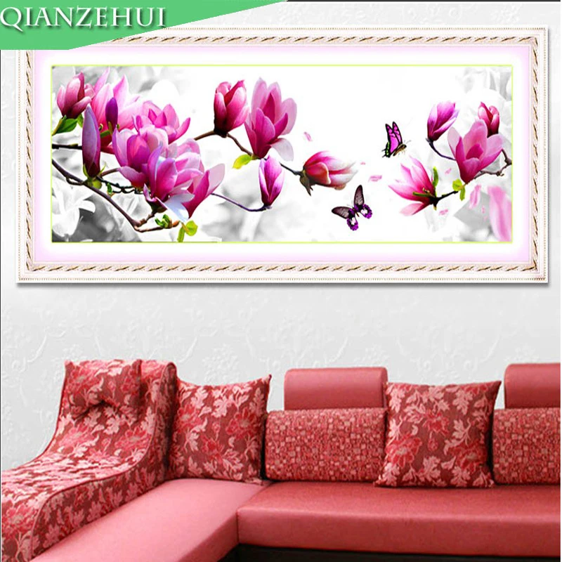 QIANZEHUI, рукоделие, DIY 3D печать точная вышивка серия цветов магнолии для гостиной, вышивка крестиком Бесплатная доставка