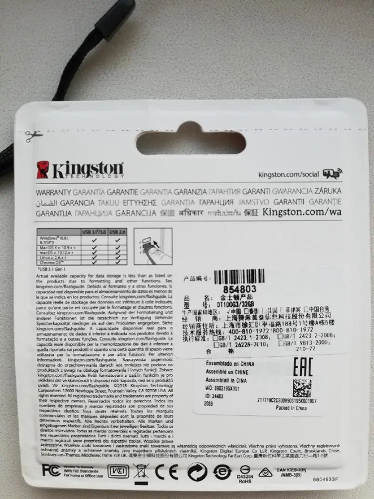 346 р. с купоном Али. Доставка бесплатная. Отправили на следующий день. До мск за 12 дней 5Post. Упаковка мелкий пропупыренный пакет - содержимое в целости. На сайте Kingston на блистере каменный мужик, тут гепард нарисован. Наверно для китайского рынка другая упаковка. Сама флешка оригинальная, заявленным характеристикам соответствует. Цифры 32 нанесены с технологией изменения цвета. На блистере на обратной стороне тоже имеется защитная наклейка. 5 лет гарантия производителя. После заказа только увидел, что в Wildberries она сейчас по 380 р.