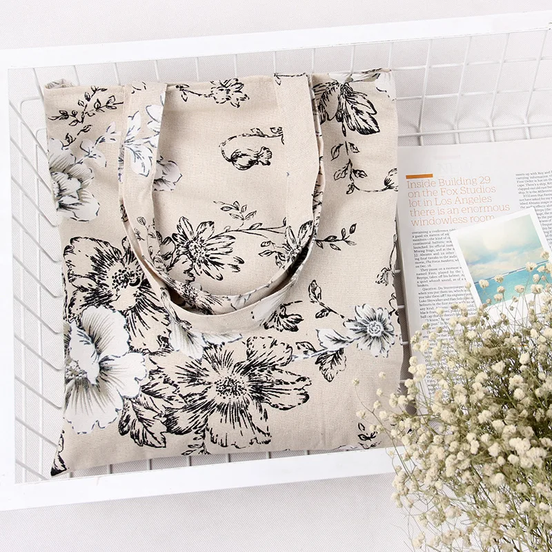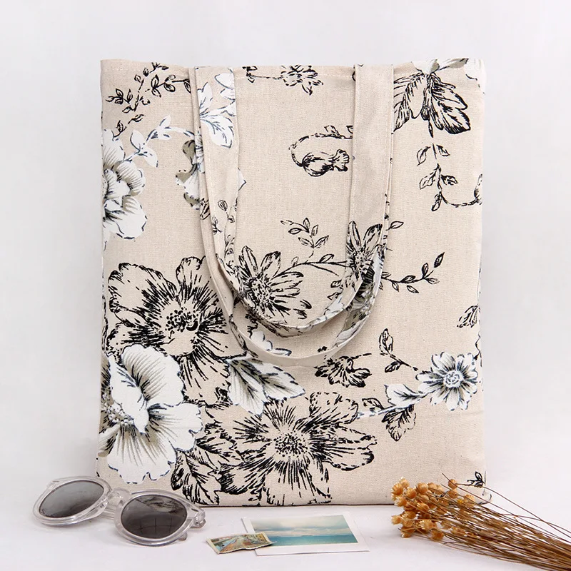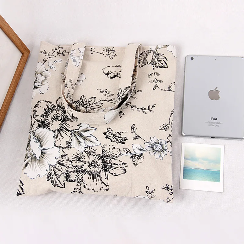 Женская Цветочная большая хлопковая льняная Экологически чистая многоразовая сумка-шоппер через плечо L262