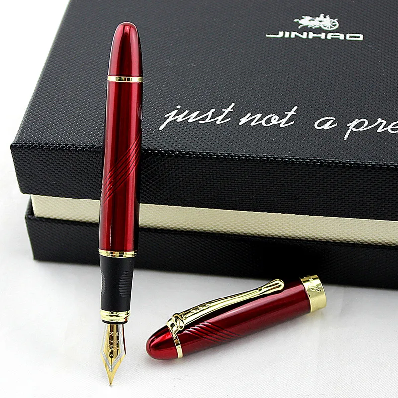 Jinhao X450 Роскошные красные перьевые ручки с черной отделкой, высококачественные металлические ручки для офиса, школьные принадлежности
