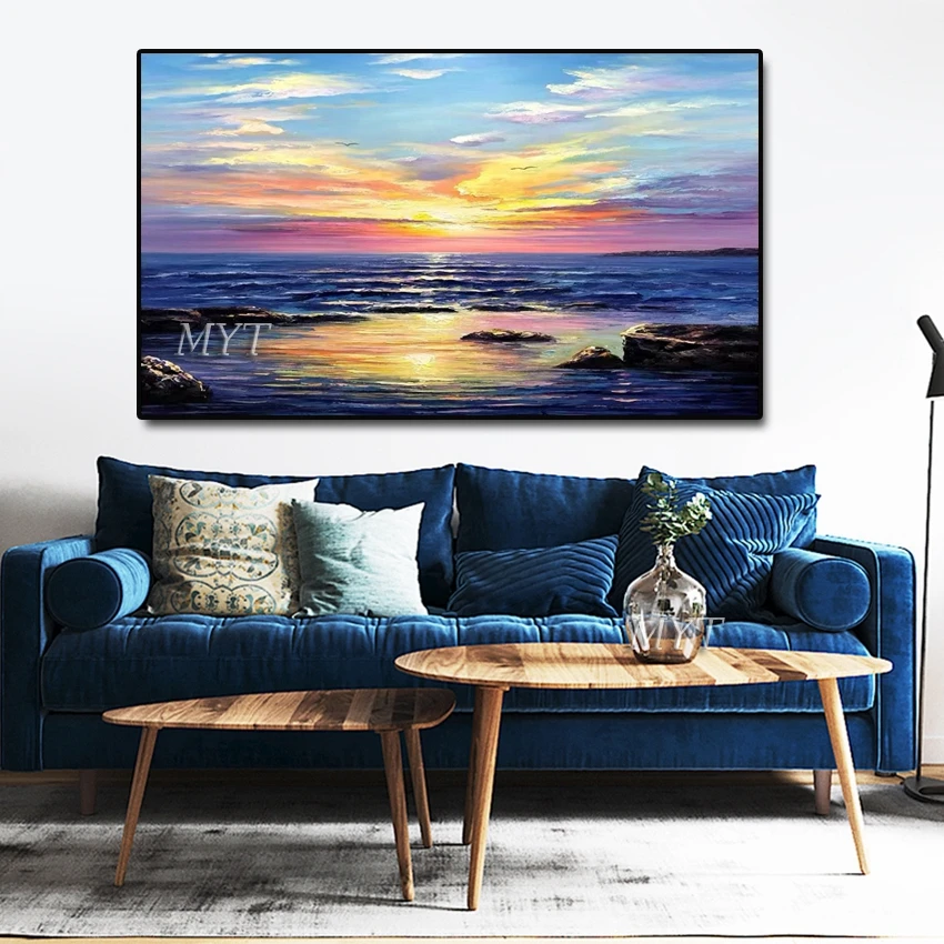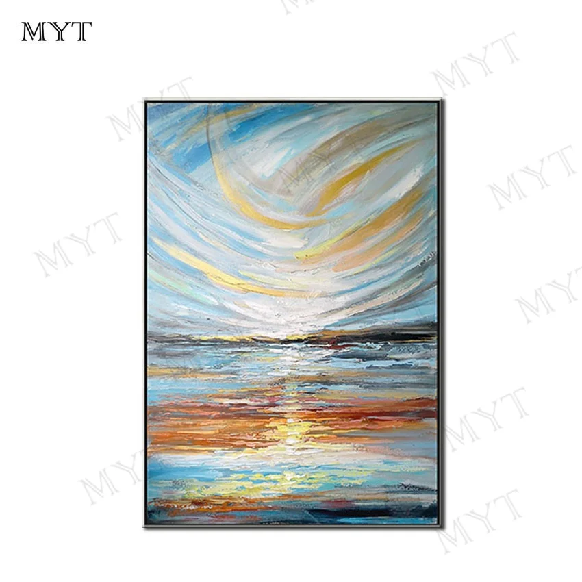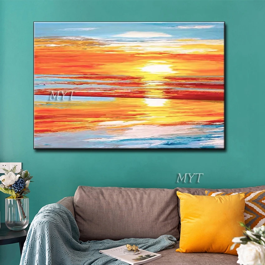 Ручная роспись абстрактной масляной живописью, картина с ножом восхода солнца, искусство ручной работы, картина морским пейзажем, роспись