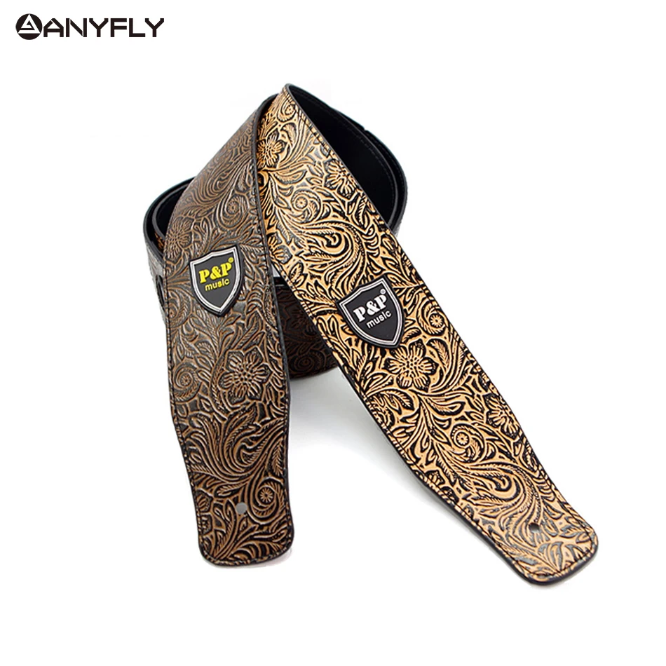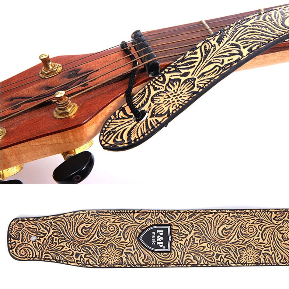 Высококачественный ремешок для гитары из искусственной кожи с цветочной резьбой для акустической электрогитары, твердый и прочный ремешок для акустической гитары